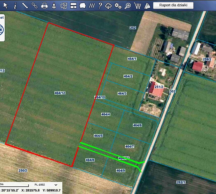 Sprzedam działkę rolną nr 464/12 (1,4923ha).Plus udział 1/3 w drodze dojazdowej o nr 464/11 (0.0436ha).
